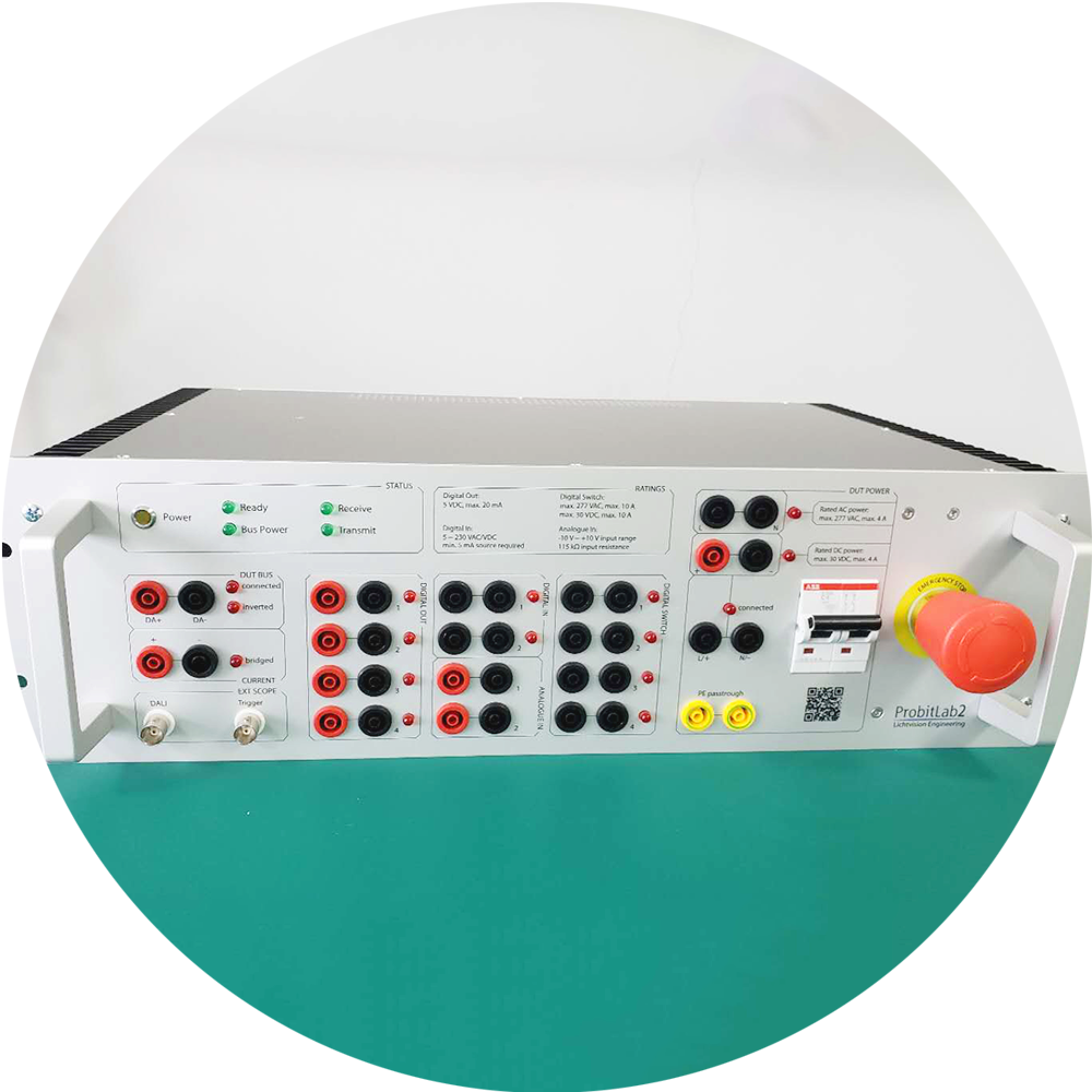 擁有專(zhuān)用的DALI實(shí)驗(yàn)室,從DALI協(xié)會(huì)購(gòu)買(mǎi)了用于DALI認(rèn)證測(cè)試的ProbitLab2設(shè)備,可以幫客戶做DALI認(rèn)證測(cè)試,客戶申請(qǐng)DALI會(huì)員后,可提交測(cè)試結(jié)果到DALI官網(wǎng)進(jìn)行認(rèn)定。